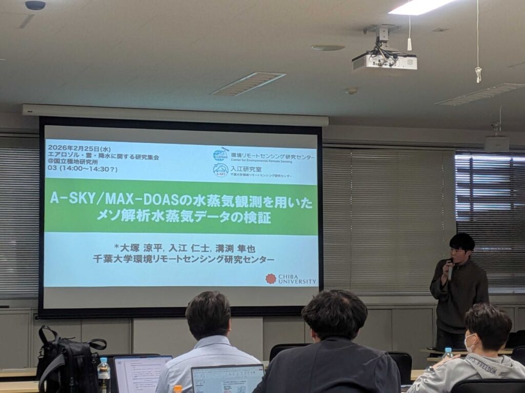 国立環境研究所で開催された、エアロゾル・雲・降水に関する研究集会に参加しました。初めての参加ということもあり最初は少し不安もありましたが、研究テーマが比較的限定されており、自分の研究内容とも近い話題が多かったため、とても有意義な2日間となりました。