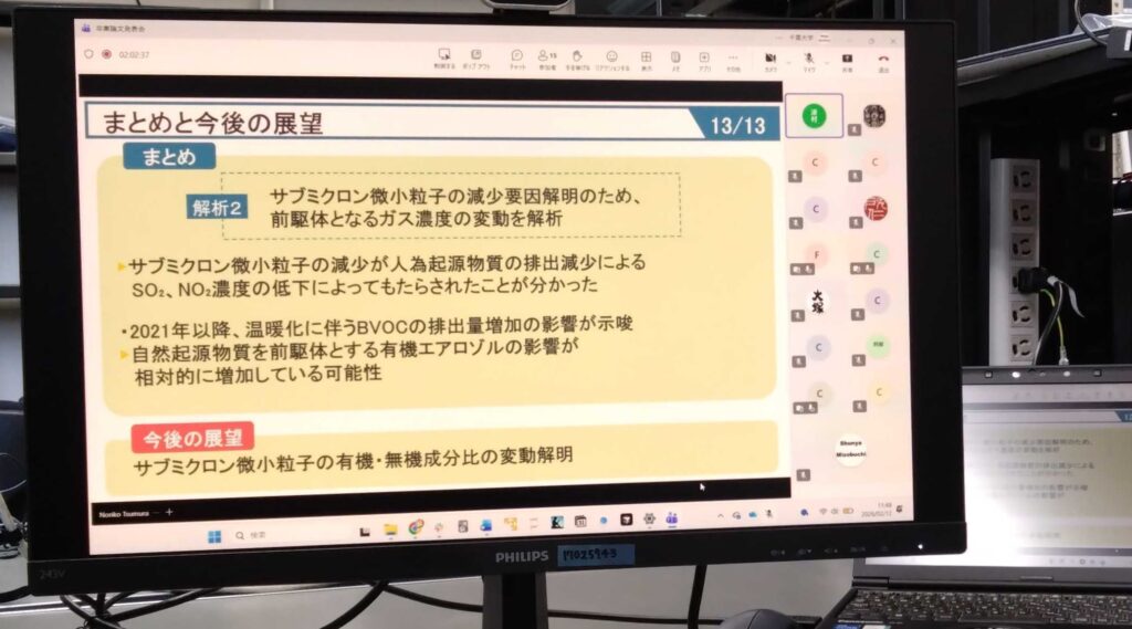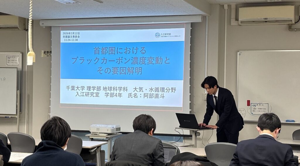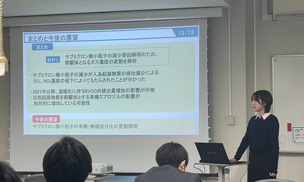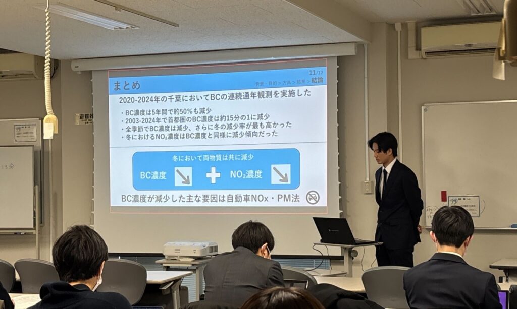 阿部直斗「首都圏におけるブラックカーボン濃度変動とその要因解明」浅倉彩花「千葉におけるサブミクロン微小粒子のトレンド解析とその要因解明」