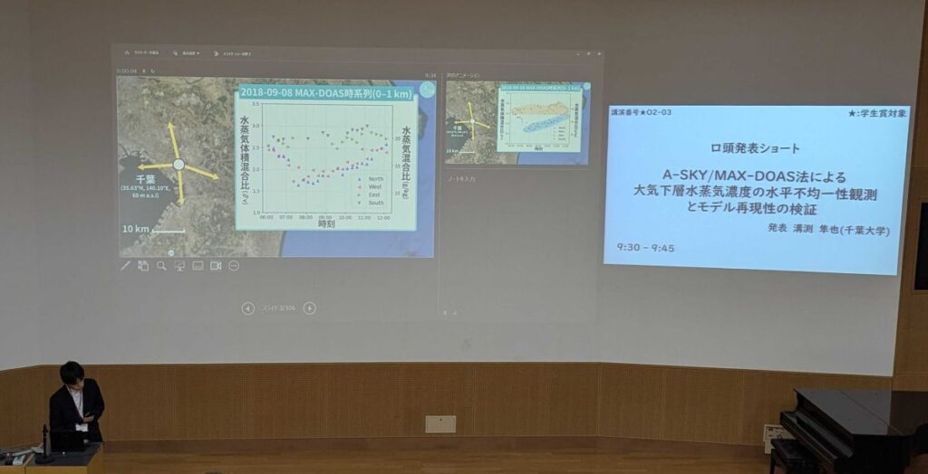 「A-SKY/MAX-DOAS法による大気下層水蒸気濃度の水平不均一性観測とモデル再現性の検証」D1溝渕隼也