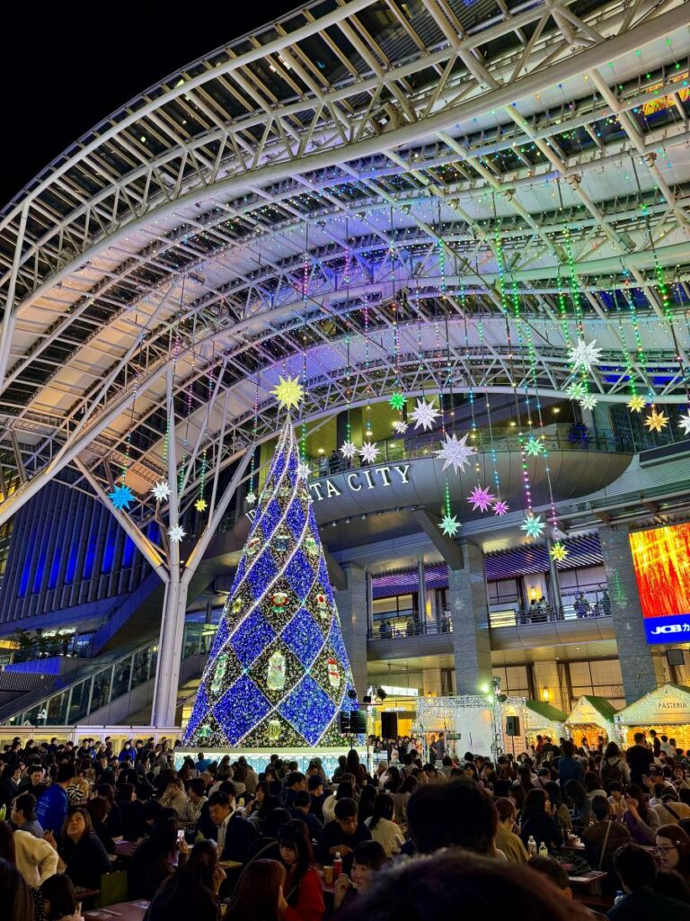 博多駅前はクリスマス仕様になっていてとてもキレイでした!