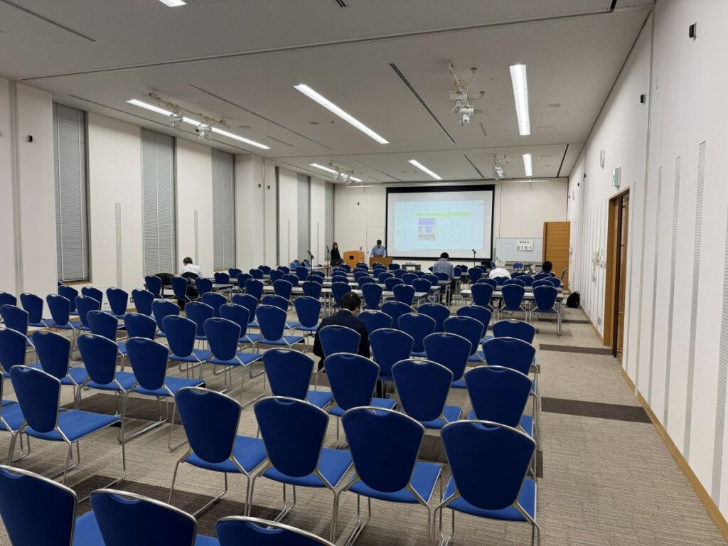1時間前に会場に着くと、部屋の広さに圧巻。最初だから人もあまり来ないだろうと見込んでいましたが、発表する時間になるとほぼ満席で立ち見の方もいて150人ほどいたでしょうか…